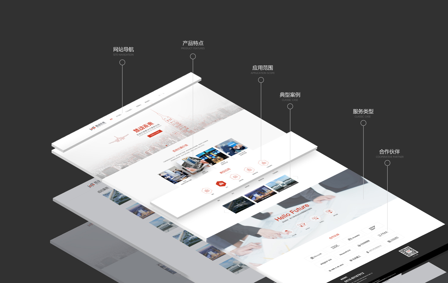确立品牌的定位,在不断的研讨中,找最核心的元素和色调。以红白为基本色调,多用留白和线元素结合,给人简洁,凌厉的感觉,配以代表智能和商务性的图片,树立起高品质的品牌形象。