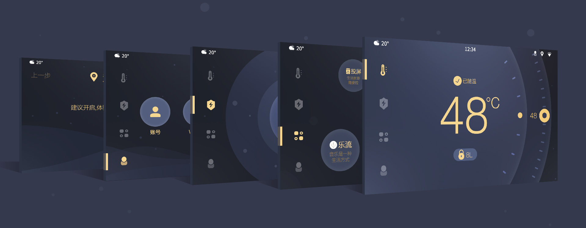 智能、高效、便捷,应该是新时代产品需要拥有的特性。好的交互体验,能使产品在使用的过程中更加深入人心。而更多功能页,根据用户的使用习惯,将用户常用的功能放大,置于最前方,不常用的缩小弱化。当用户不操作界面时,页面气泡球体轻盈浮动,相互碰撞,缓慢散开。如煮水时水中产生的点点气泡。