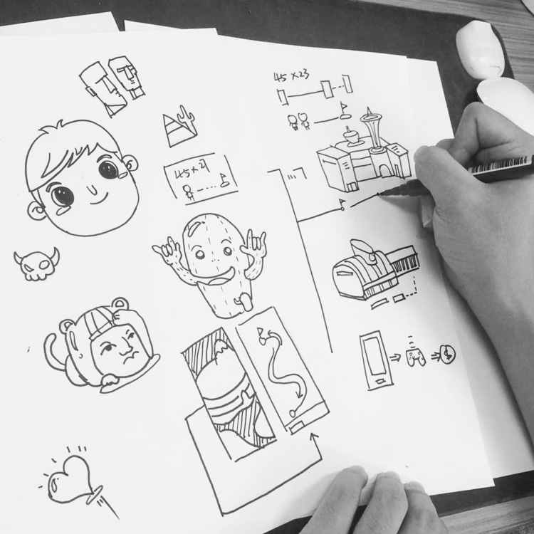 前期通过大量的草图绘制,大胆随性的绘制富有个性的物体人物等形象。不断与客户磨合碰撞,提取风格特征。为往后的视觉设计奠定合适的视觉方向。