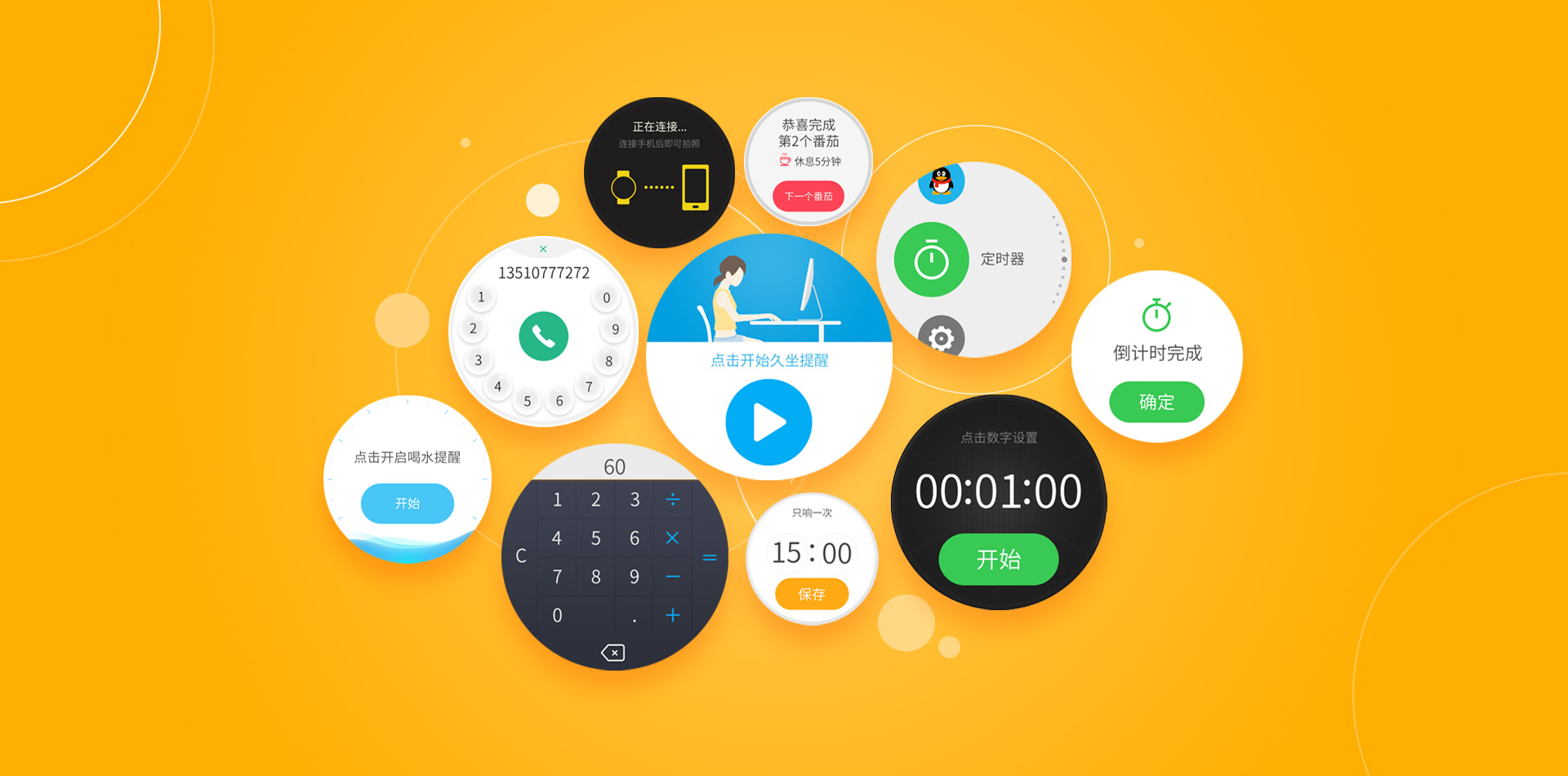我们还设计了生动可爱的手表腕盘。每次唤醒手表,看到那只萌物的表情,是否给它萌坏了。