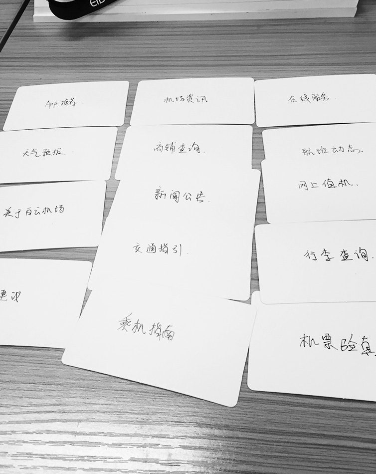 为了更好了解用户需求进行导航及信息架构方面的重设计,我们采用了分类卡片的方法。将多有功能拆分,然后依据用户的使用场景来分类,重新整合,这样能清晰地优化整个APP的信息架构,优化用户操作体验,提高易用性。