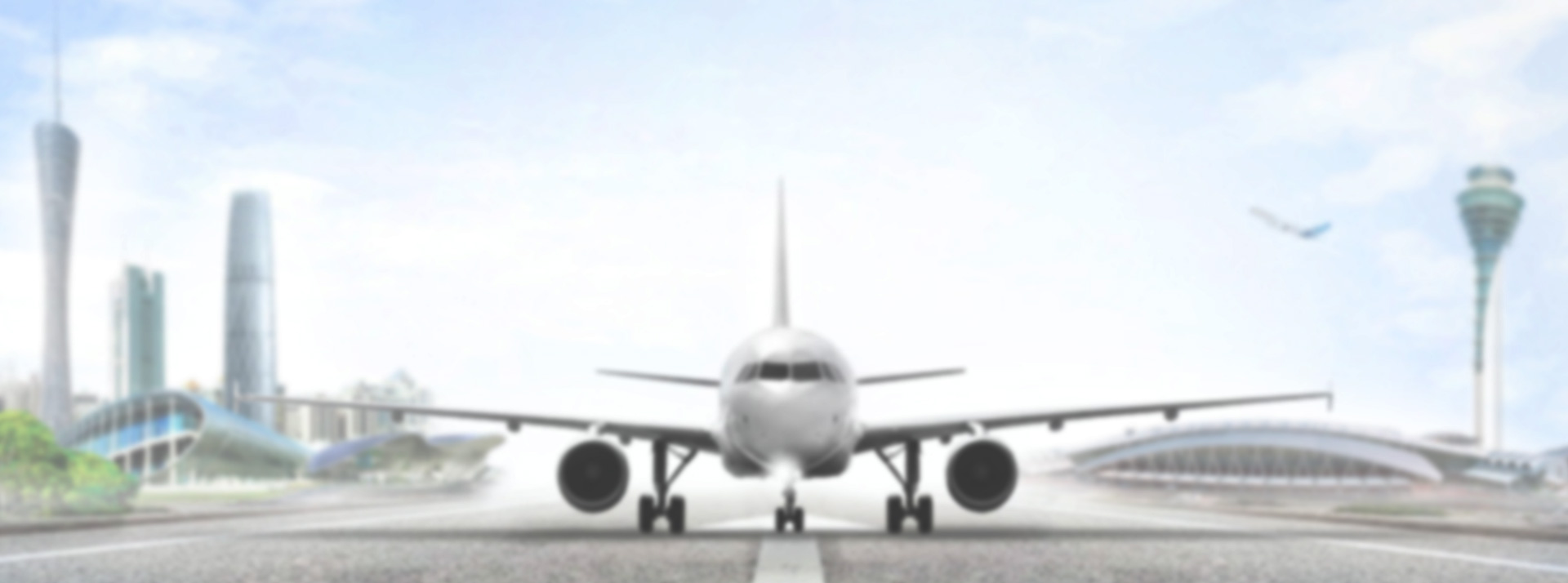 主页画面以机场跑道为场景,明亮的天空为大背景,东面展现具广州标志性建筑,西面展现广州白云国际机场航站楼,飞机从南往北,降落跑道由远至近,拉进广州与国际的位置,打造了一种镜头感,让视觉聚焦,飞机降落向用户传递信息,让用户感到自然且愉悦,增加真实感。同时视觉聚焦亦能使用户清楚知道需在应用何处集中注意力,起到情感引导作用。