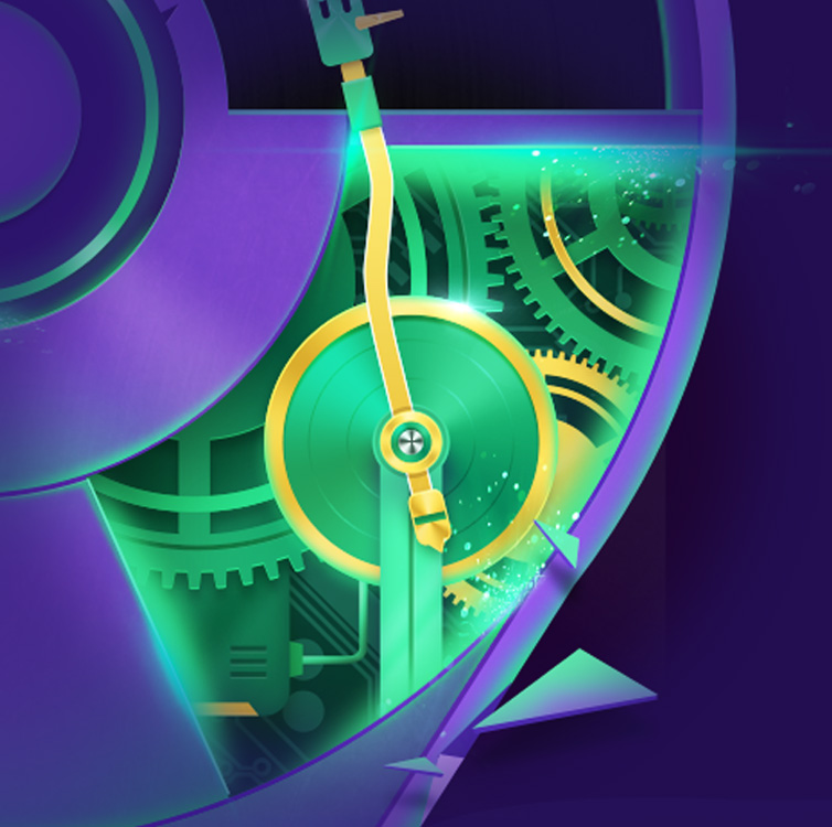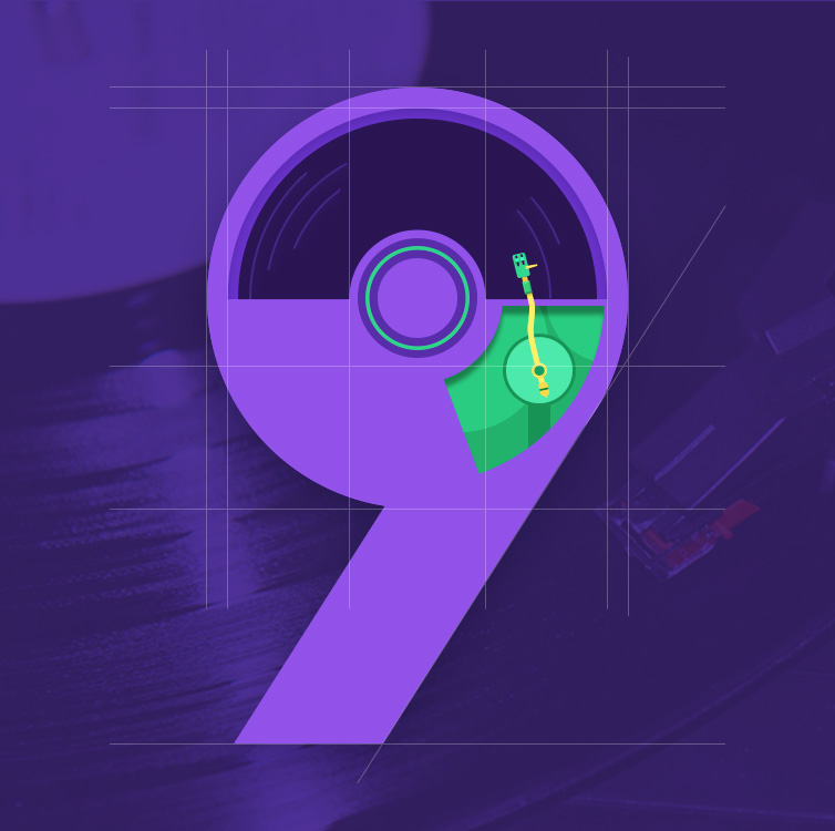 播放器整体外形设计从“9”的数字外形上进行变形和黑胶唱片的外形结合。呼应9周年主题含义与体现播放器页面音乐器材的交互表现。