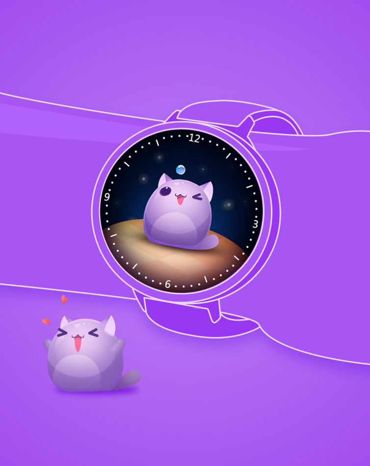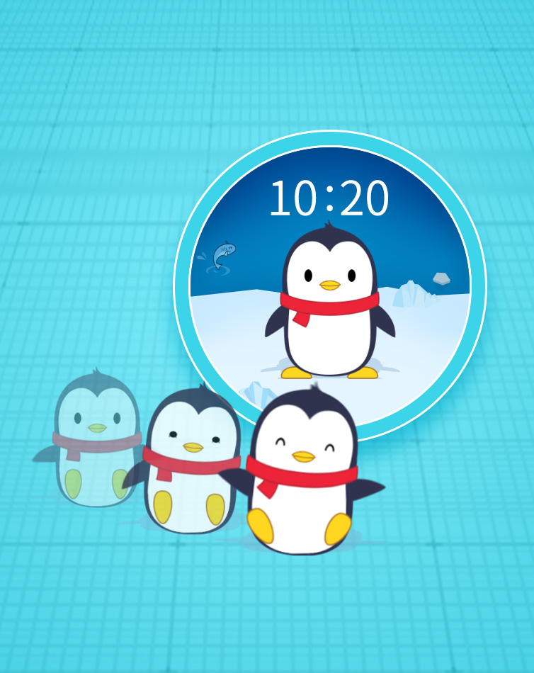 我们还设计了生动可爱的手表腕盘。每次唤醒手表,看到那只萌物的表情,是否给它萌坏了。