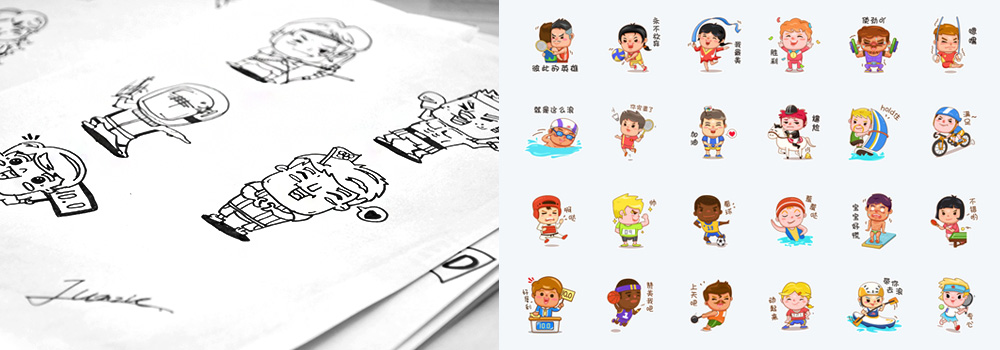 JUNZIE:作为一名设计师,我觉得设计源于生活,我的设计灵感源自对生活的洞察,将生活中的共鸣点融入到设计作品中,让设计作品更加人性化、富有情感,达到一种产品与用户之间的情感交流与共鸣。分享最近一个为腾讯QQ设计的奥运聊天表情项目,我以“我们同在一个快乐的、和平的大家庭”为设计理念,设计出有趣的卡通形象,尽量顾及到了不同肤色、不同人种的表达。人物形象以圆润的描线造形来表达,从而减弱了竞争性的体现,我们设计更倾向是表达一个快乐与和平的奥运会,把奥运融合到生活化的事件中,使作品与人之间产生一种情感上的共鸣。情感的注入,可以使本次设计更直达人心。