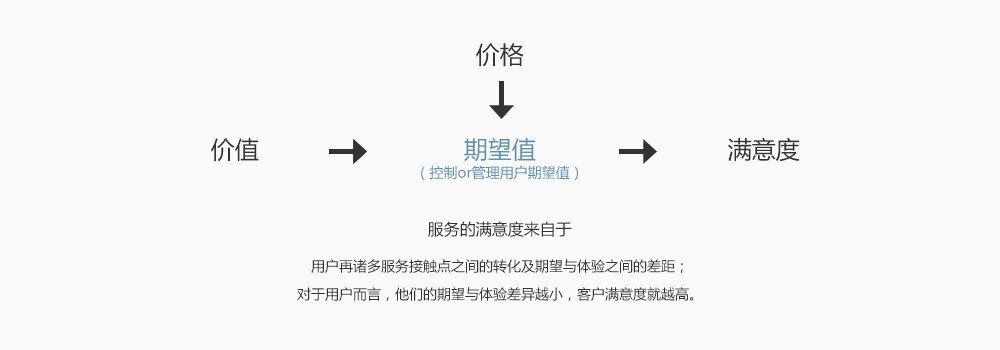 首先我们要知道用户满意度来自于哪里?用户的满意度来自于预期与体验之间的差距。也就是说预期越高,体验越低用户满意度越差。预期越低,体验越高用户满意度越高。