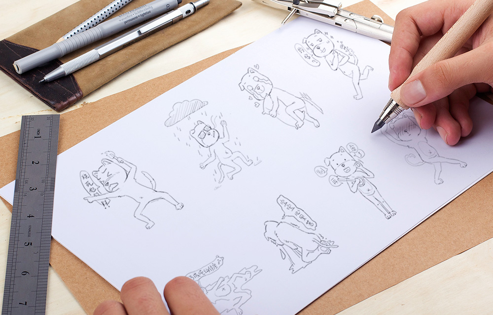 根据表情的主题,经过前面提到的关于趣味和共鸣的思考后,总结出要设计的表情的形象、风格和基调(性格),然后根据规范,开始动手制作表情。